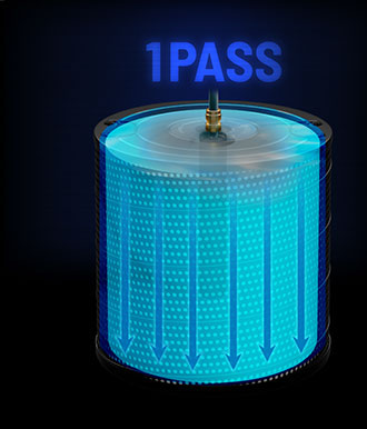 0.3μファイバーの高性能濾紙を採用することで、高速濾過を実現。濾過速度はSK-1C:20L/min、SK-1S:40L/min(最大)。1PASSで終了するため作業はとてもスピーディーです。
